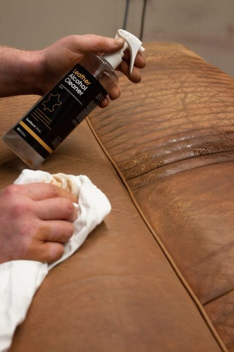 Da sau khi được tẩy màu với Leather Prep, bước tiếp theo là được làm sạch lại với dung dịch tẩy sạch da Alcohol Cleaner.