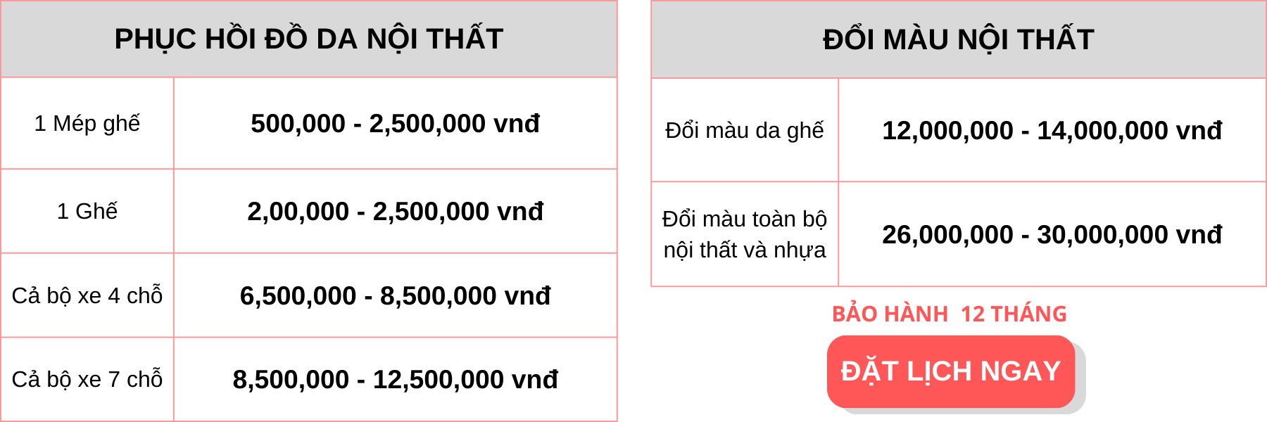 Trong quá trình sử dụng, nội thất xe ô tô – đặc biệt là ghế da – thường gặp phải nhiều vấn đề như: Bạc màu, xước, nứt, rách hoặc ố bẩn do thời tiết, ma sát và thói quen sinh hoạt. Thay vì phải bọc mới với chi phí cao, giải pháp phục hồi ghế da ô tô hiện đang là xu hướng được nhiều chủ xe lựa chọn. Không chỉ tiết kiệm chi phí, phương pháp này còn giữ nguyên bản thiết kế và chất liệu da ban đầu của xe, đặc biệt phù hợp với da thật và các dòng xe sang như Mercedes, BMW, Audi, Lexus...